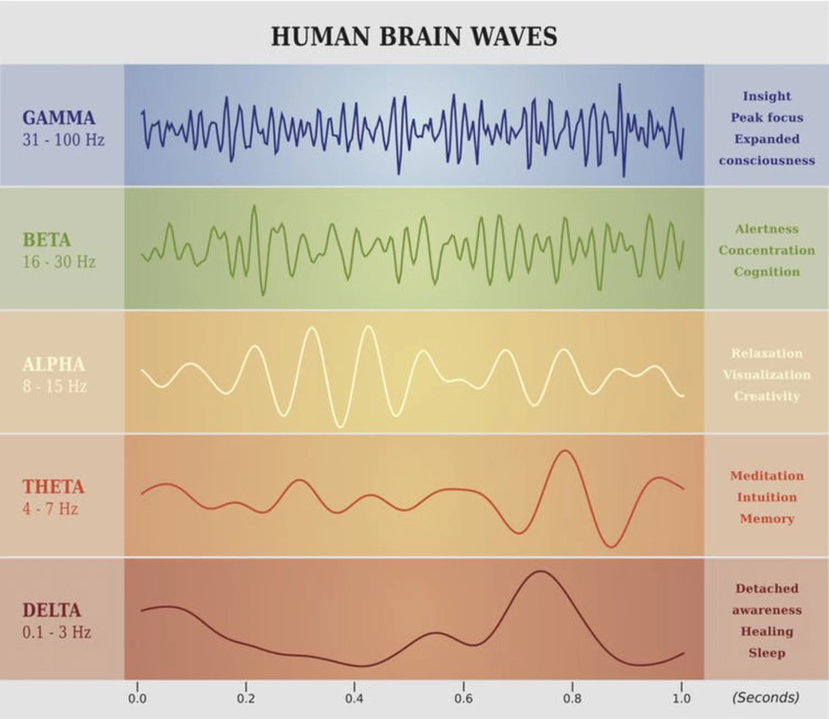 Fries focuses on gamma, beta and theta waves. These labels refer to the speed of electrical oscillations in the brain, measured by electrodes placed on the outside of the skull. Groups of neurons produce these oscillations as they use electrochemical impulses to communicate with each other. It's the speed and voltage of these signals that, when averaged, produce EEG waves that can be measured at signature cycles per second.