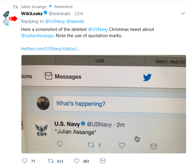 Julian Assange's Twitter Account Temporarily Deleted, U.S. Navy Accidently Live Tweets a Search