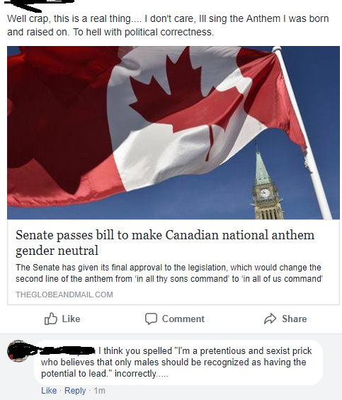 Someone posts a rational response to this story and here is some moron calling the person a 'sexist prick'