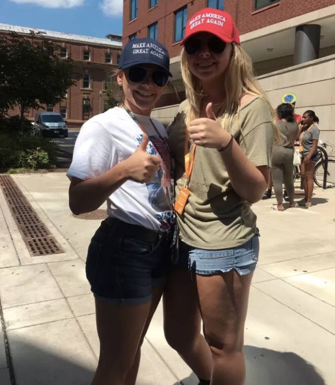 Allie Vandee and Sarah Applequist sparked anger when they walked onto the campus Saturday wearing MAGA hats and other Trump gear, inflaming tensions that had already been stoked by President Trump's response to the neo-Nazi and white supremacist rally in Charlottesville.
