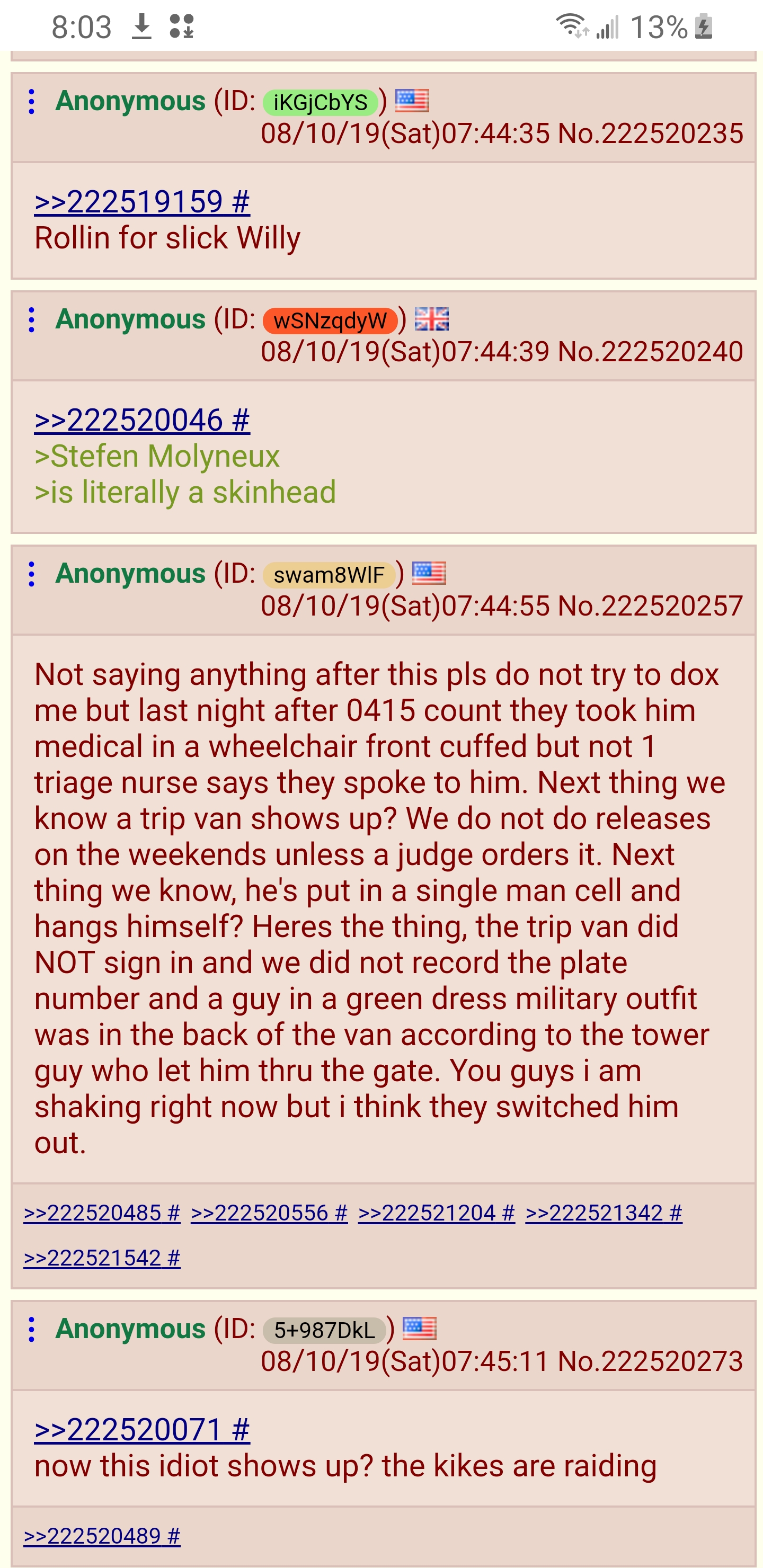 I am far away from New York, and all the information I have is hearsay. There's that. This was posted to 4chan before Epstein's death was announced:
