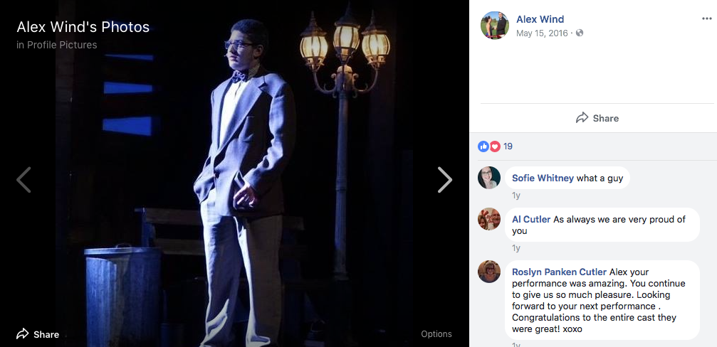 Images from his Facebook page reveal him to also be a student actor and a close friend of Kasky.