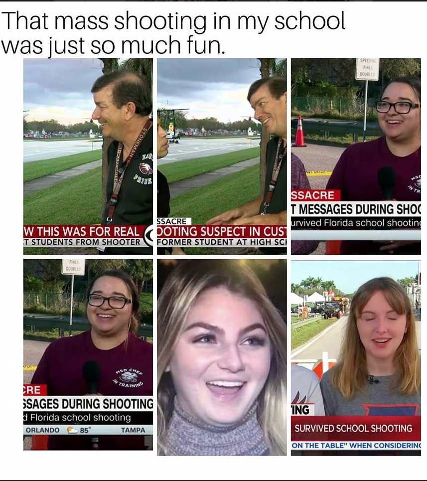 I knew something was fishy about the Florida shooting when I saw that video of the blond girl saying she had just spoken to the shooter and was laughing. It just wasn't right, seemed scripted; so I had commented about this somewhere.