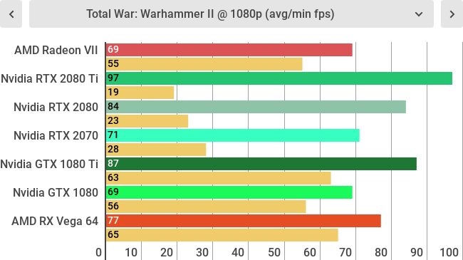 Despite these hangups, the Radeon VII represents a major generational leap over the Radeon Vega 64. Across our synthetic testing, we saw dramatically higher scores while games ran five to 15 frames per second (fps) faster. Still, these improvements weren’t nearly as stark as the jump from the Nvidia GTX 1080 to the RTX 2080.