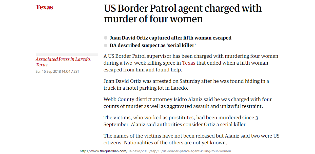 article: https://www.theguardian.com/us-news/2018/sep/15/us-border-patrol-agent-killing-four-women