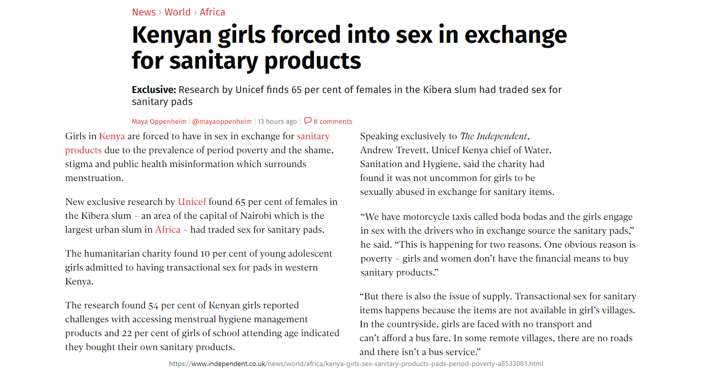 article: https://www.independent.co.uk/news/world/africa/kenya-girls-sex-sanitary-products-pads-period-poverty-a8533081.html
