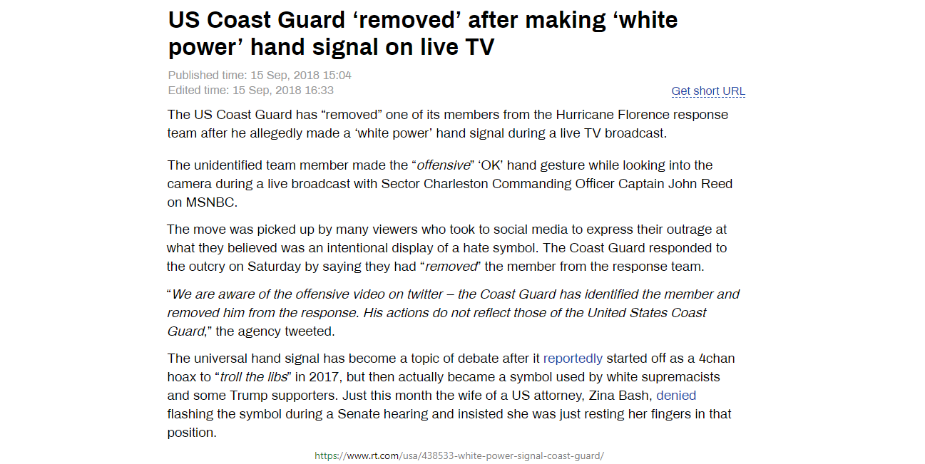 article: https://www.rt.com/usa/438533-white-power-signal-coast-guard/