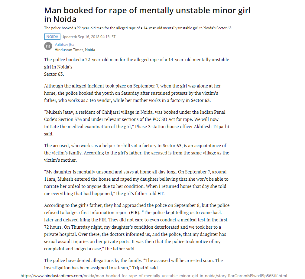 article: https://www.hindustantimes.com/noida/man-booked-for-rape-of-mentally-unstable-minor-girl-in-noida/story-RorGnrnmM9wrxII9p56BtK.html