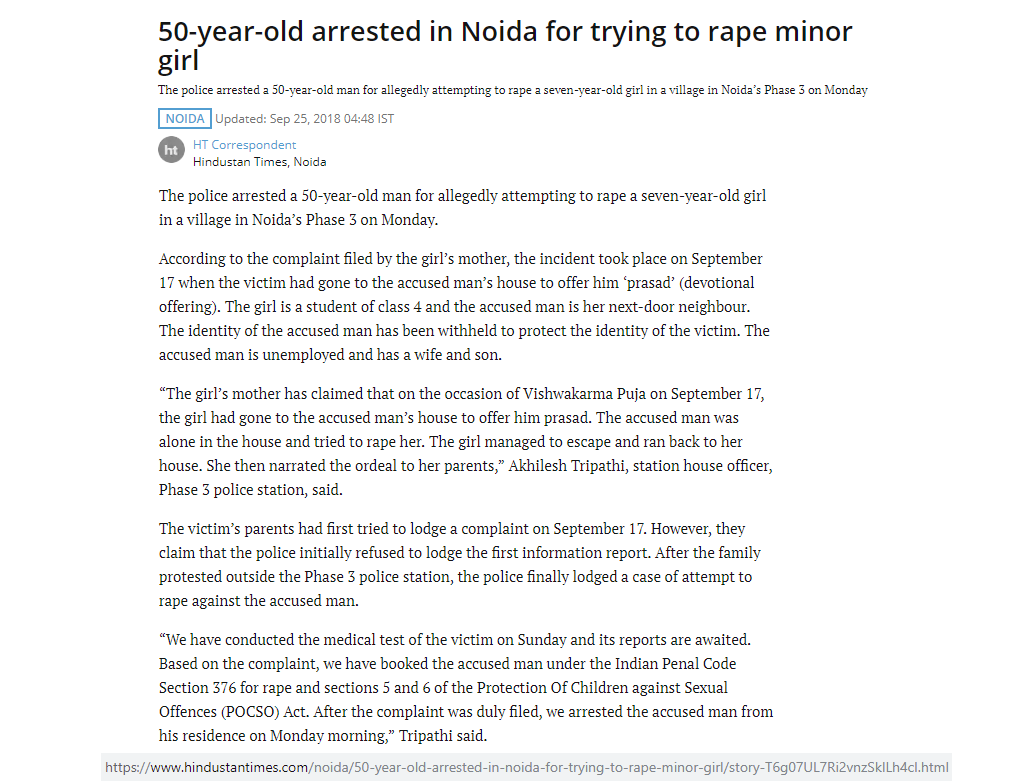 article: https://www.hindustantimes.com/noida/50-year-old-arrested-in-noida-for-trying-to-rape-minor-girl/story-T6g07UL7Ri2vnzSkILh4cI.html