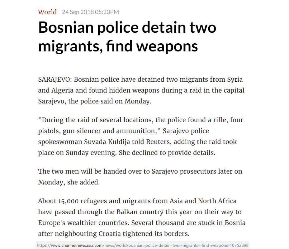 article: https://www.channelnewsasia.com/news/world/bosnian-police-detain-two-migrants--find-weapons-10752698