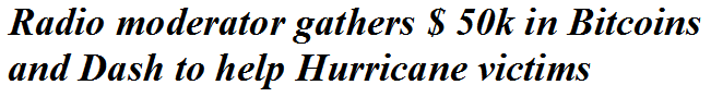 - Moderator gathers $ 50k in Bitcoin and Dash to help Hurricane victims!