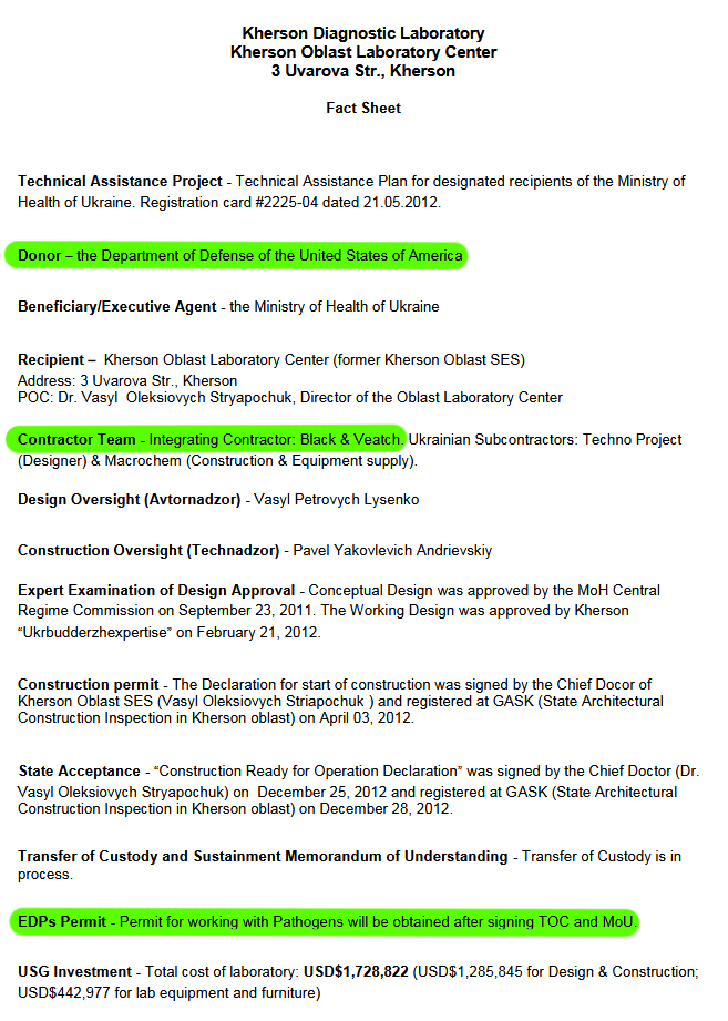 No problem. Thank you for your support. It is seems quite a major issue that isn't really spoken about. I think this is just the tip of the iceberg as well. These DoD funded labs are all over the world not just in the Ukraine.