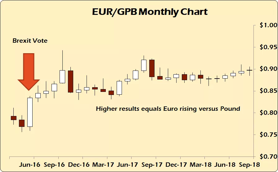 So, when anything pro-Brexit happens the Pound is sold versus the euro creating stronger export markets for British goods.