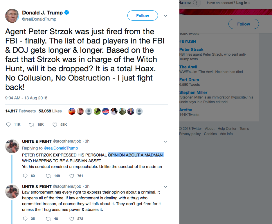 [DTube Premiere] Peter Strzok Fired from the FBIhoaxwars (57)in #news • 8 years ago Finally, the FBI sick loser/CIA Iranian catfish Peter Strzok gets removed from his post at the FBI. ▶️ DTube ▶️ IPFS #politics #funny #comedy #dtube