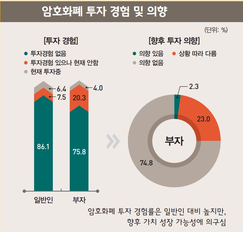 ํนํ ๊ธ์ต์์ฐ 50์ต์ ์ด์ ๋ณด์ ํ ๋ถ์์ ์ํธํํ ํฌ์ ๊ฒฝํ๋ฅ (28.2%)์ ๊ธ์ต์์ฐ 10์ต~50์ต์์ ๋ณด์ ํ ๋ถ์์ ํฌ์ ๊ฒฝํ๋ฅ (23.5%)์ ์ํํ๋ ๊ฒ์ผ๋ก ์ง๊ณ๋๋ค. ์ด๋ ์ฌ์ฐ์ด ๋ง์์๋ก, ์ํธํํ์ ํฌ์๊ฒฝํ์ด ๋ ๋ง๋ค๋ ๊ฒ์ ๋ฐฉ์ฆํ๋ค.