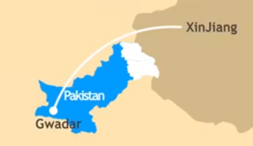 CPEC starts from the "Gwadar" Pakistan and ends at "Xinjiang" china