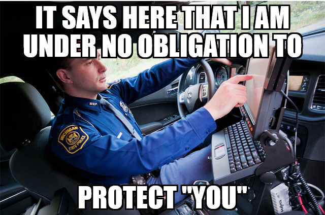 knew there were cases,that had ruled that,But I thought it was just a technicality,or some such.I had Not heard of the Supreme Court cases ,And that they had no obligation to protect.