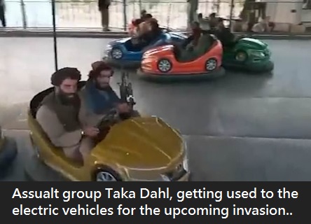 "Anyway", Said the leader of ISIS-K " Because of our great American allies, er, I mean enemies, it meant that we could soon learn to drive these strange electric vehicles. ...I'd never quite realized until then, just how utterly backwards the UK was. ...ISIS-K will liberate the enslaved peoples of the UK from their electric nightmares, and we'll give 'em petrol! "
