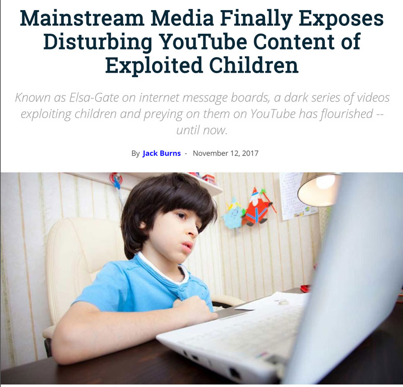 In other terrible child abusing news, we have the mainstream media finally paying attention to an issue I've been talking about for a very long time. That issue is a series of YouTube channels that exploit children and prey on them through YouTube. This has been creating a controversy known as #elsagate. I've been talking about this while YouTube decides to make their number one priority not these kinds of videos, not even radical Islamic terrorist videos, but videos by independent creators like myself and Black Pigeon Speaks. While lots of people point out their hypocrisy, they waste their resources trying to take us down. This is just frustrating, but at least this is finally getting some mainstream media attention.