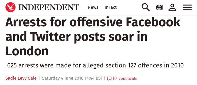 Meanwhile, the authorities who are supposed to stop the terrorists, terrorists that were influenced, financed, and funded by our very own tax dollars are now going on the offensive. They have arrested 625 people in the U.K. who made Facebook and Twitter posts that were deemed offensive. Welcome to the Orwellian Big Brother police state nightmare that they want us to all live under.