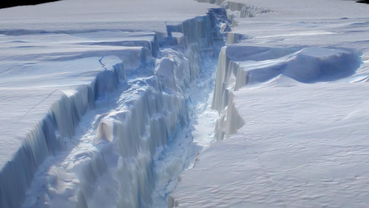 Scientists are watching intently as a titanic section of Larsen C, the fourth largest ice shelf in Antarctica, prepares to break off into the sea as an iceberg the size of Delaware.