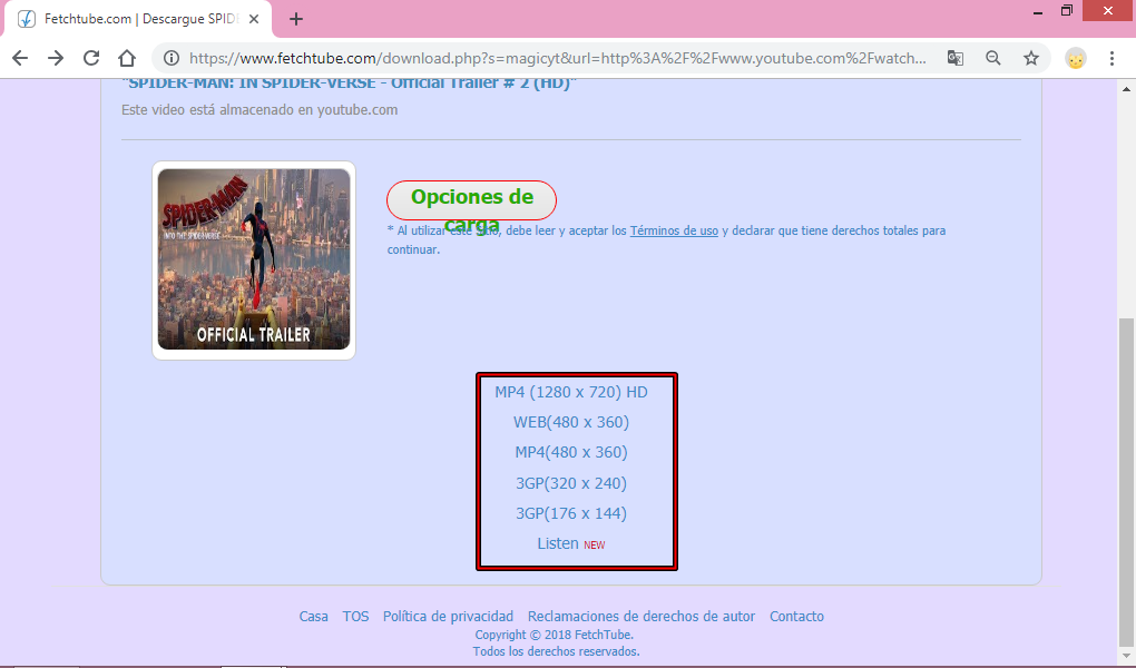4.Al hacer clic, mostrará una serie de opciones donde puedes seleccionar el formato de video