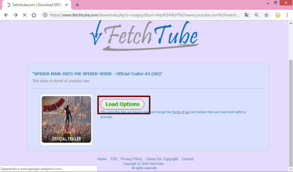 3.Presionamos ENTER y automáticamente nos enviará a esta página, hacemos clic en LOAD OPTIONS