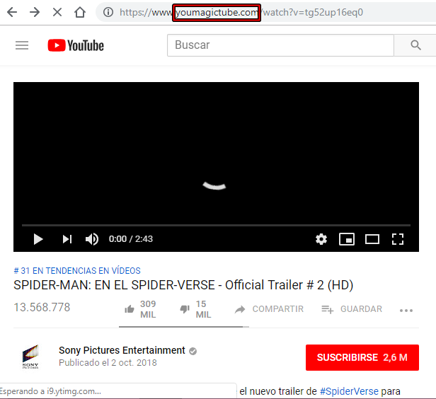 2.Luego escribimos la palabra "MAGIC" entre "youtube", de esta forma www.youmagictube.com