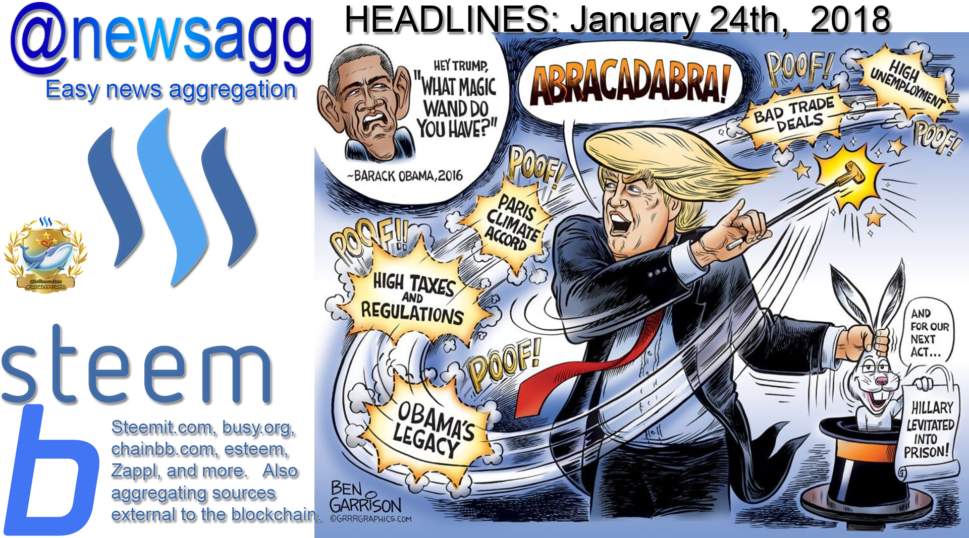 Thank you for reading @newsagg. This is a news aggregator service for steemit. It is constructed daily by hand and does take some time. Many of us practically live on steemit now. As such we can often forget to check what is going on out there outside of steemit. This account was created as an attempt to help mitigate that some. This is experimental so the account will likely go through transitions as it is determined what is most useful to the community. Feel free to submit news tips as comments. They will likely not be looked at extensively until the next aggregation post to which they are most suited. We will try to limit the amount of these posts that we post each day to no more than 4, unless some breaking news warrants there should be more. With this account we will not do a lot of comment and reply unless it is necessary to verify or get further information on a tip. Those of us that work this account will use our personal accounts for interactions of a personal or opinion nature. We wish to remain free of bias and simply present the news on this account.