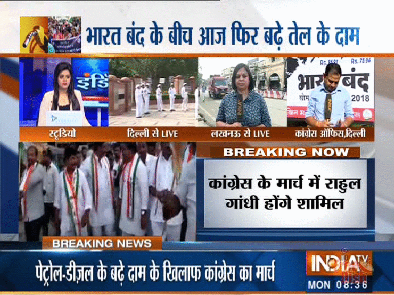 Today India is closed by call of opposition in this Rahul Gandhi procession on road. The Procession is started in case of petrol increased rates. This is all politics. Sonia Gandhi and Manmohan Singh was present in Rally was given against Prime minister. Rahul gandhi has also talks on GST is Goods and Services Tax and prime minster isn't talks on GST. Rahul Gandhi has verbal war on Prime Minister Narendra Modi because rates of petrol are rises from Rs70-100. Other side the ordinary people are disturbed, don't providing the jobs to youngster, minister has Promises to farmer but given the true answers to farmers and ordinary people. Most issues is petrol has is increased day to day. Congress Party has create the violence in India today. The speech is given in Ramlila historical ground at Delhi. There are many issues created by the Modi. Fuel on fire in every states. Rahul Gandhi said that today rate is 80RS. Congress Party has also said Prime minister don't talks that what the people wants to listen. Listening the same speech every time gets tired. People votes to New Prime minister will do something better in India but unfortunately prime minister has banned the notes or cancelled the Notes or currency. Former prime minister says that It's time to change the Government Of India. He also said that speechless on currency ban.