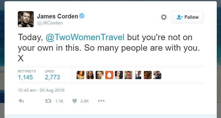 Follow on twitter at #twowomentravel