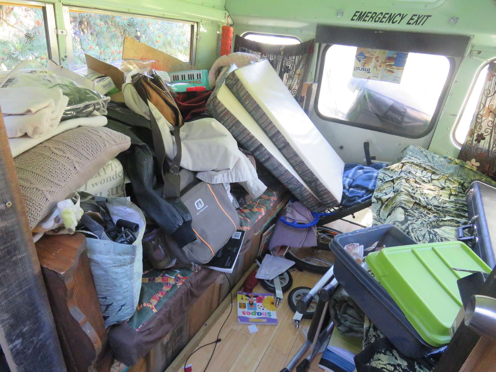 Here is a photo of the child's sleeping quarters after it was ransacked.