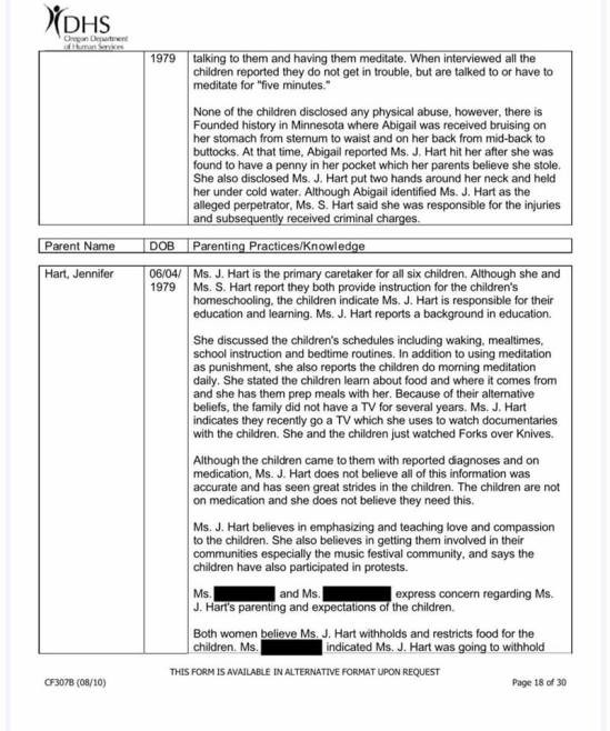 In the weeks leading up to the fatal crash, the Hart family home was unsuccessfully visited by CPS. On the final visit, the CPS worker called 911 to report her concerns about being unable to get the family to open the door. The 911 call can be heard on this KPTV news clip.