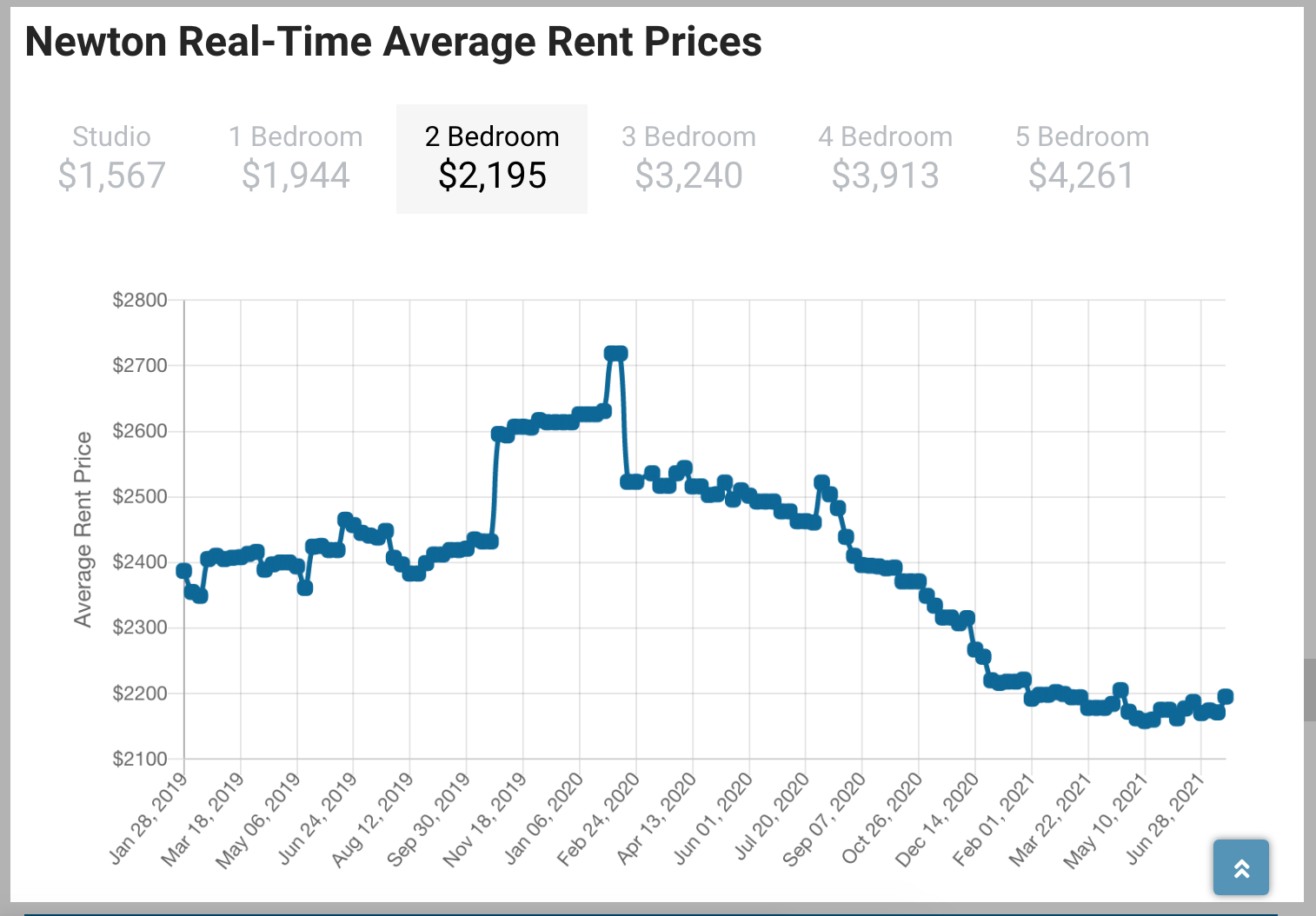 A side-by-side comparison of this data suggests that Newton is an affordable place to rent a small apartment, however prices for larger units tend to be more costly. The drop in pricing for smaller units could be an opportunity for renters in 2021 and beyond.