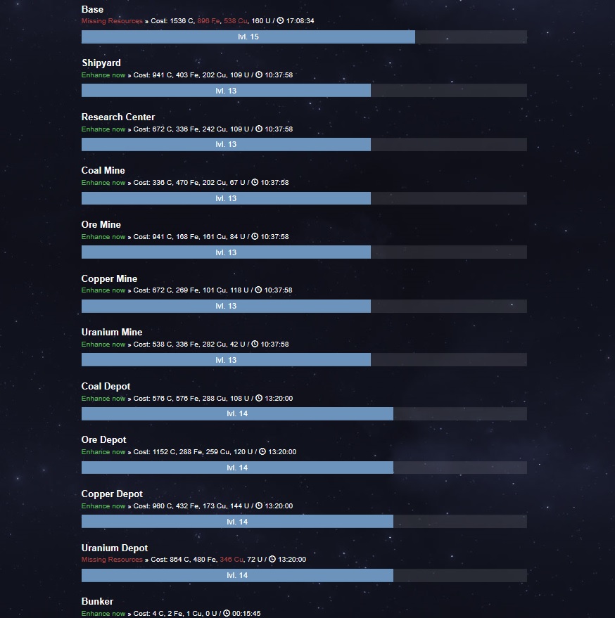 Шахты, депо, база... в основном это тот набор, на который следует обращать внимание в первую очередь. С базой лучше прокачаться до самого конца или на худой конец до тех пор пока хватает ресурсов. Чем выше уровень базы, тем больше исследователей могут быть отправлены за один поход.
