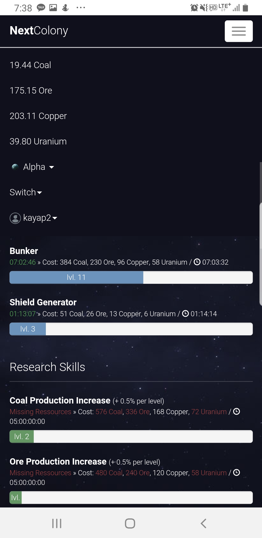 [Nextcolony] 넥스트콜로니 2019년06월11일 일단 비행기부터 띄우고kayap2 (48)in #nextcolony • 7 years ago 새로운 행성찾아 셰속 비행중입니다. 하나라도 좀 칮았으면 하는 바램이 t.t 그리고 벙커와 쉴드를 업그레이드 중입니다. 기본건물을 업그레이드를 안해서 기본ㄱㄴ물 스킬 업그레이드 중입니다. 즐거운 하루 되십시오. #kr-nextcolony #kr