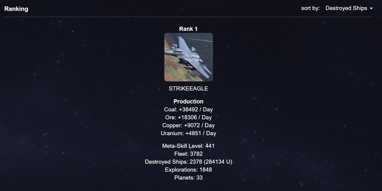 Этому товарищу лучше в поле зрения не попадаться так как тот смог истребить немыслимое количество космической техники. Борец!