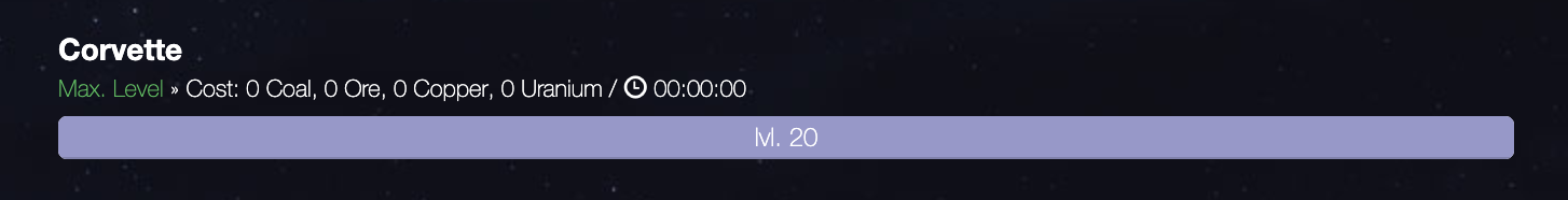 Corvettes are the smallest ships. They are surprisingly quick in covering distances between planets but only carry 20 of resources. So I'm going to need a lot of them!