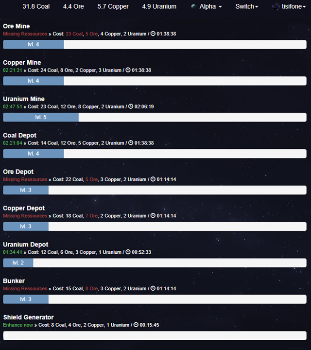 However, although I had a long time without taking care of my planet, I was at level 38 and after investing resources in some deposits and mines, raised two levels, is something exciting and motivating. I decided to first invest the resources I had at hand to raise the mine of fuel that is uranium, I have seen how they discover planets and in order to do this I must have enough fuel, plus that these mines are the ones that produce less.