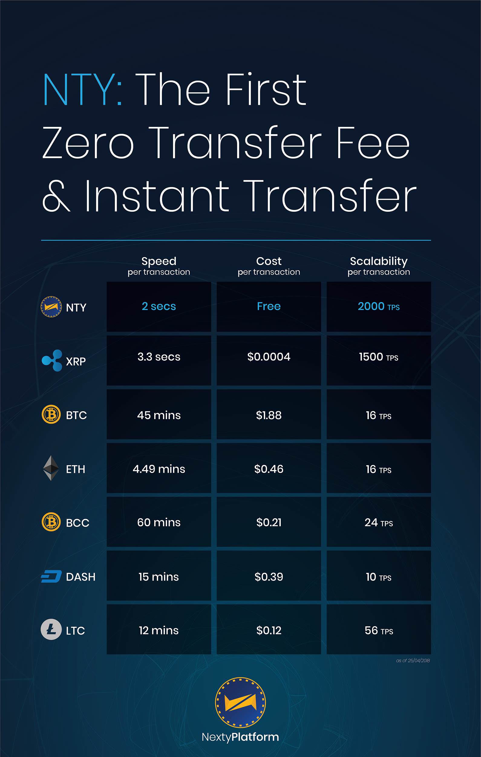 That’s because Nexty is an open source code on the ethereum platform and has a Dual Cryptocurrency Confirmation System. Nexty solves the problem of time and transaction costs by inventing the Duo Cryptocurrency Confirmation System. With the Duo Cryptocurrency Confirmation System, all transactions will be transferred in near-instant (only delayed due to Internet connection) at no cost.
