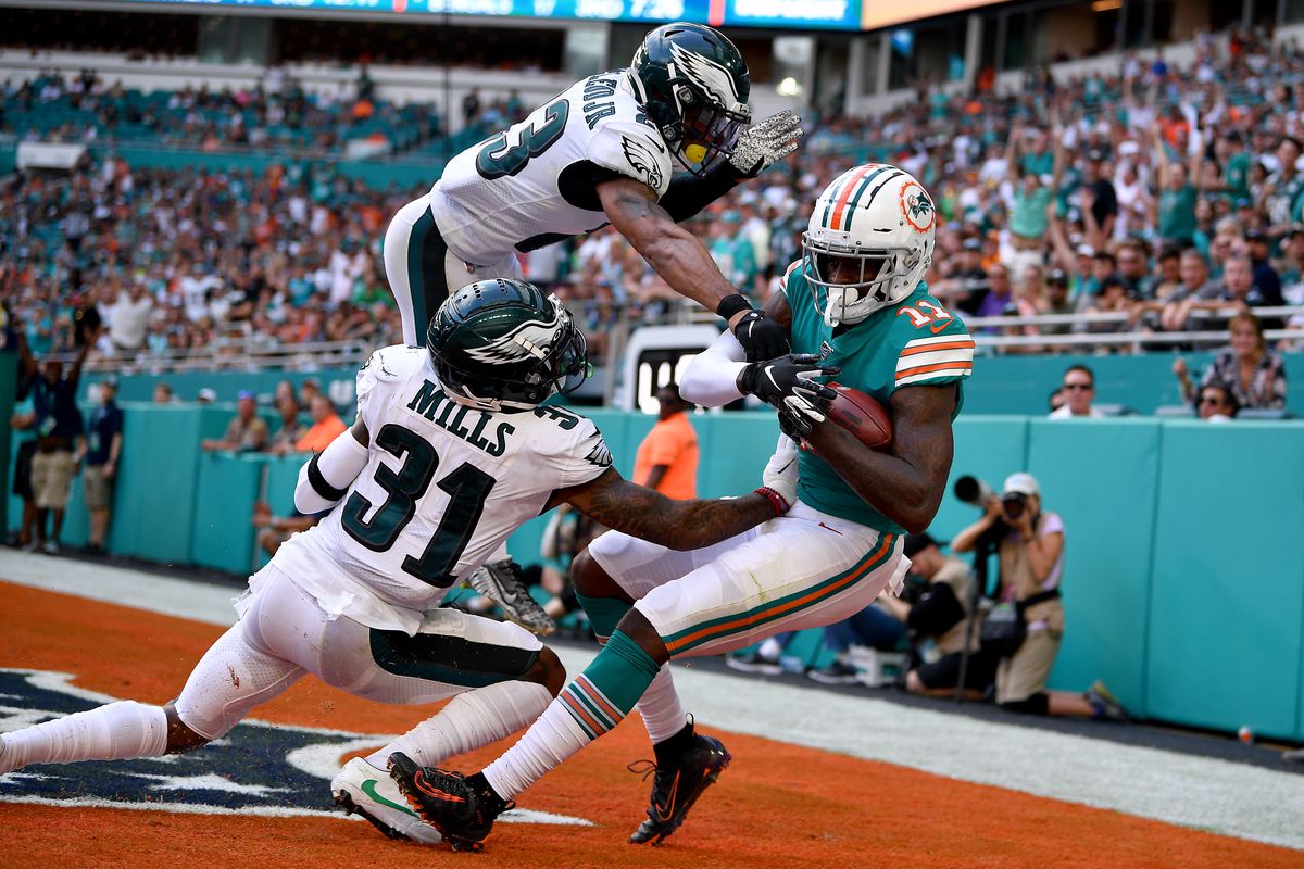 The Eagles could find no answer to stop the Fitzpatrick to WR DeVante Parker connection. Fitzpatrick kept throwing the ball up and Parker kept snatching it out of the air. Both had big days: 27/39, 365 yards, 3 TDs, 1 INT for Fitzpatrick and 7 catches, 159 yards, 2 TDs for Parker. TE Mike Gesicki chipped in with 5 catches for 79 yards and his first career TD.