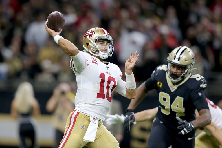 Each team’s rushing attacks did well, but this game was truly a battle between the QBs. Drew Brees (29/40, 349 yards, 5 TDs) and Jimmy Garoppolo (26/35, 349 yards, 4 TDs, 1 INT) lit up the Superdome. Niners WR Emmanuel Sanders got in on the action too, throwing a 35 yard TD pass on a trick play to go along with his big day catching Garoppolo’s dimes: 7 catches, 157 yards, 1 TD.