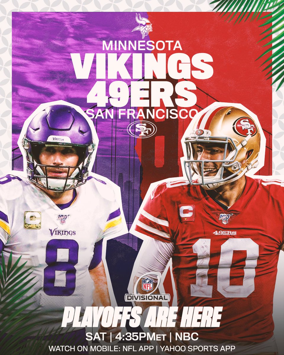 Fresh off of their big upset win against the Saints, the Minnesota Vikings travel west to face the NFC West champion and #1 seed the San Francisco 49ers. The playoff tv schedule makers certainly didn’t do the Vikings any favors. After a grueling overtime contest last Sunday, Minnesota has to travel again on a short week to kick off Divisional weekend. Meanwhile the Niners will be well rested after their bye week.