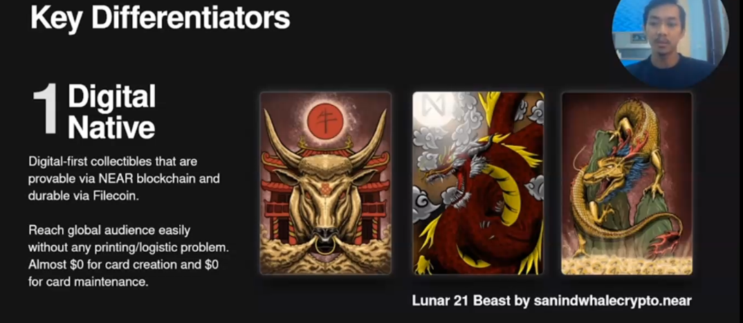 The first one in the digital native, if we compare ourselves to the physical card collectibles, we can reach global audience easily no printing.