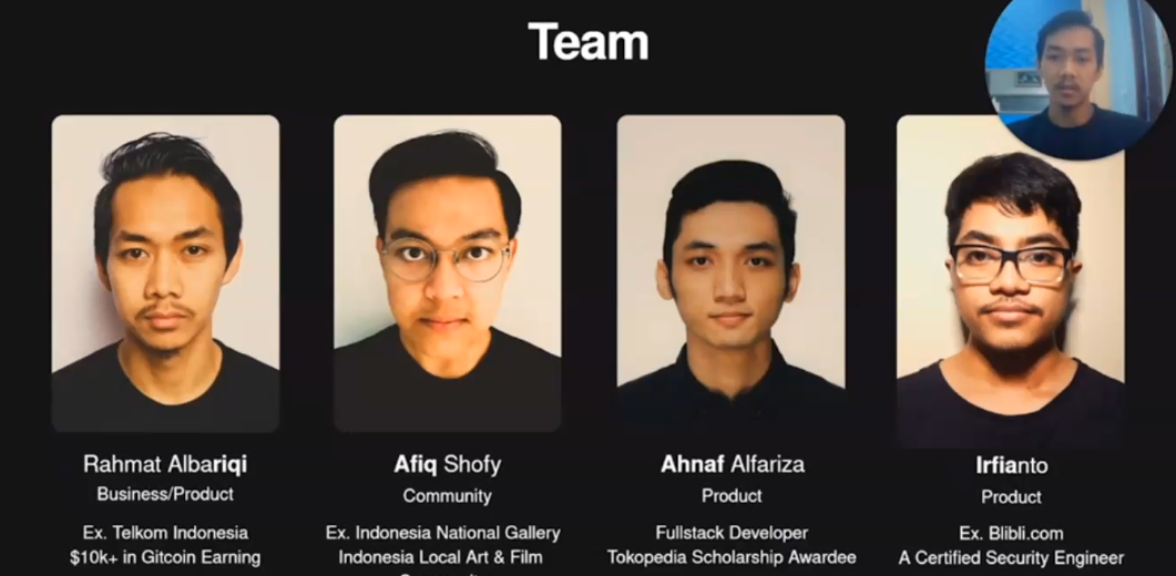 So yeah, we believe we could build the next crypto native IP on top of Paras, we could have the next Star Wars we could have in the next Harry Potter building natively on crypto and blockchain technology and the team we are a four person team we are all based in Indonesia we may, we are already working together since one and a half years ago we do a lot of hackathons, we do a lot of bounties so we've been involved in this space, in developing in web3 space for quite some time.