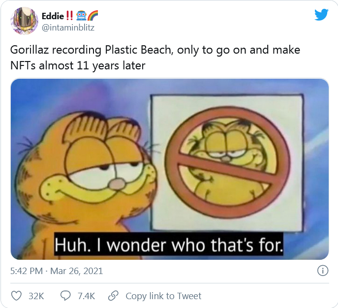 트위터에서 Gorillaz 팬들은 대체 불가능한 토큰 밴드 웨건에 호핑하는 밴드의 부조리를 지적 할 수있었습니다. 탄소 배출 측면에서 NFT가 얼마나 해로운 지 정확히 결정하는 것은 불가능할 수 있지만 그림은 유망하지 않은 것 같습니다. 밴드는 과거에 환경 문제에 대해 목소리를 냈기 때문에 특히 2010 년 앨범 Plastic Beach에서 그랬습니다.