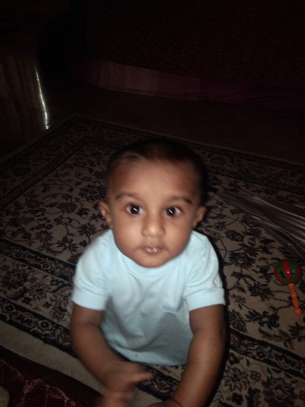 I think the intrigued look on the babies face was simply from who is this pale Indian dude with weird coloured eyes and why does he speak gibberish lol..