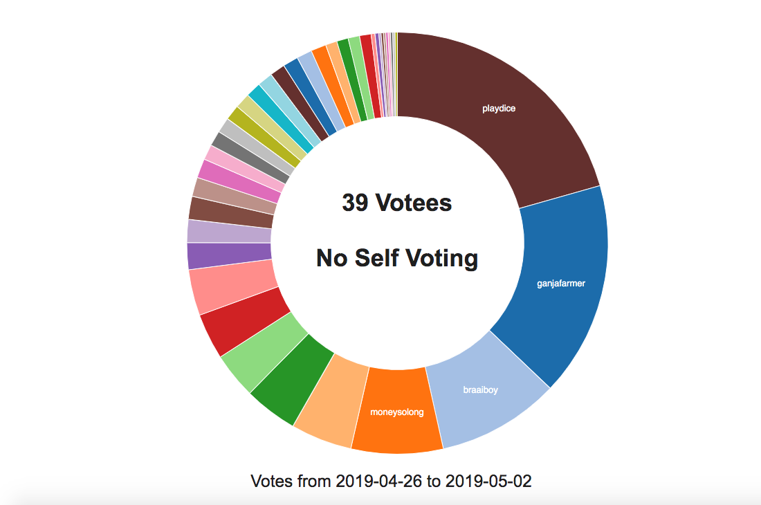 During the last week of April 2019, 39 UPVOTEES have been hit with multiple upvotes from the @slingshot.