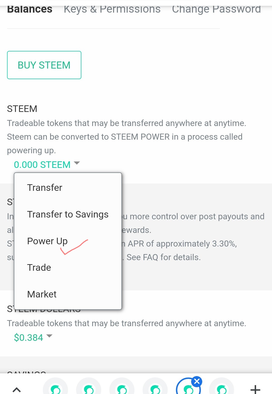 Go to Steem, move to the small arrow pointing downwards. Now select Power up from the list of drop down.