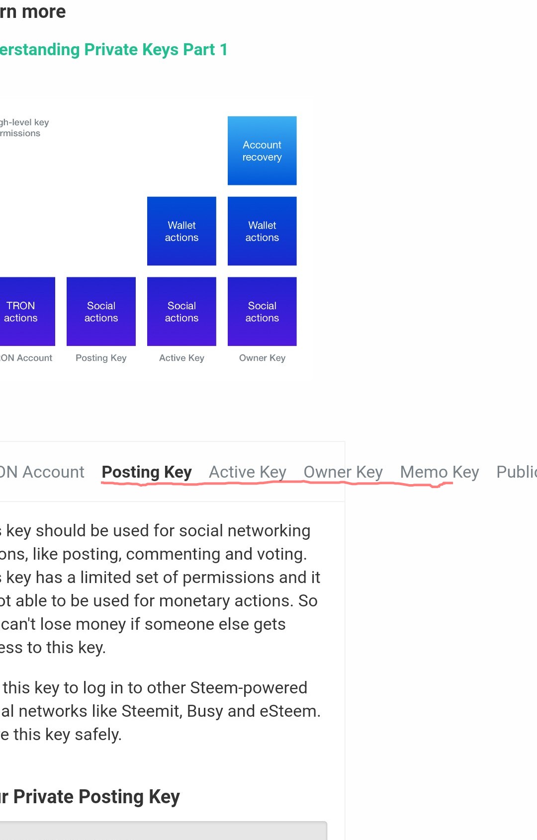 POSTING KEY - Is the most frequently used key it has low risk capacity as it is used mainly for social functions such as to post, edit, comment, vote, resteem.